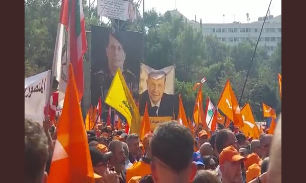 شاهد.. حزب الله ينضم لأنصار #عون في احتفاليتهم في محيط قصر بعبدا#لبنان#الحدث pic.twitter.com/GbomkDnO9R