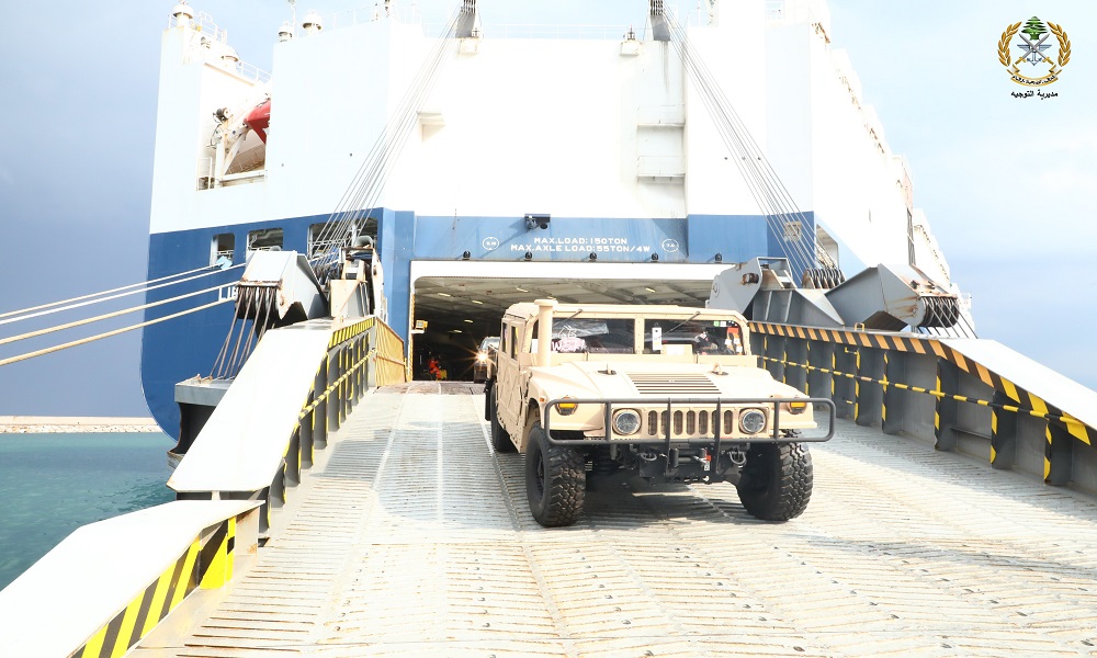 بالصّور: مساعدات عسكريّة أميركية إلى لبنان November 7, 2022 05:37 PM وكالات تسلّم الجيش اللّبناني عبر مرفأ بيروت ١٣ آلية من نوع “هامفي” و١١ شاحنة وكمية من الأعتدة العسكرية، في إطار برنامج المساعدات العسكرية الأميركية الخاصة بالجيش اللبناني.