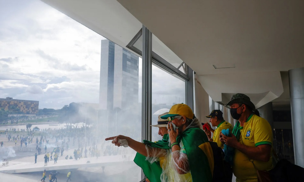 اقتحم أنصار الرئيس البرازيلي السابق، جايير بولسونارو، الأحد، مبنى الكونغرس ومقرات الوزارت في العاصمة برازيليا، بعد أن كسروا الطوق الأمني المضروب حول هذه المنشآت، وذلك احتجاجا على عودة الرئيس اليساري لولا دا سيلفا إلى الحكم مجددا، الأسبوع الماضي.
