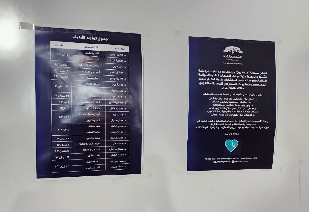 وضعت مؤسسة “متجذرون” يدها بيد أطباء بلدة رشميا والجوار بهدف تقديم الخدمات الصحية الأولية لأهالي البلدة خصوصا وعاليه عموما من دون أي تمييز.