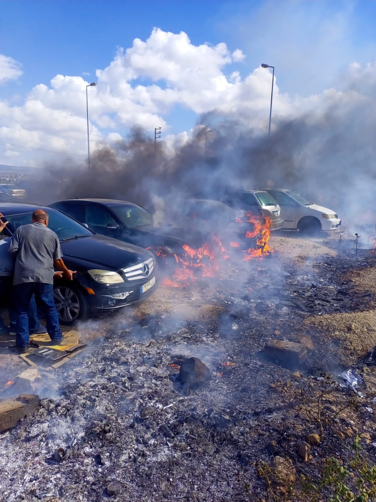 بالصور: حريق كبير في وادي خالد… والنيران تلتهم السيارات! September 30, 2023 12:25 PM وكالات إندلع حريق في أكوام من النفايات، بمحلّة جسر قمار الحدوديّة في منطقة وادي خالد، اليوم السبت. وامتدّت النيران إلى عدد من السيّارات المركونة بجانب الطريق وتسبّبت بخسائر كبيرة. في حين تعمل عناصر الدفاع المدني على إخماد الحريق.