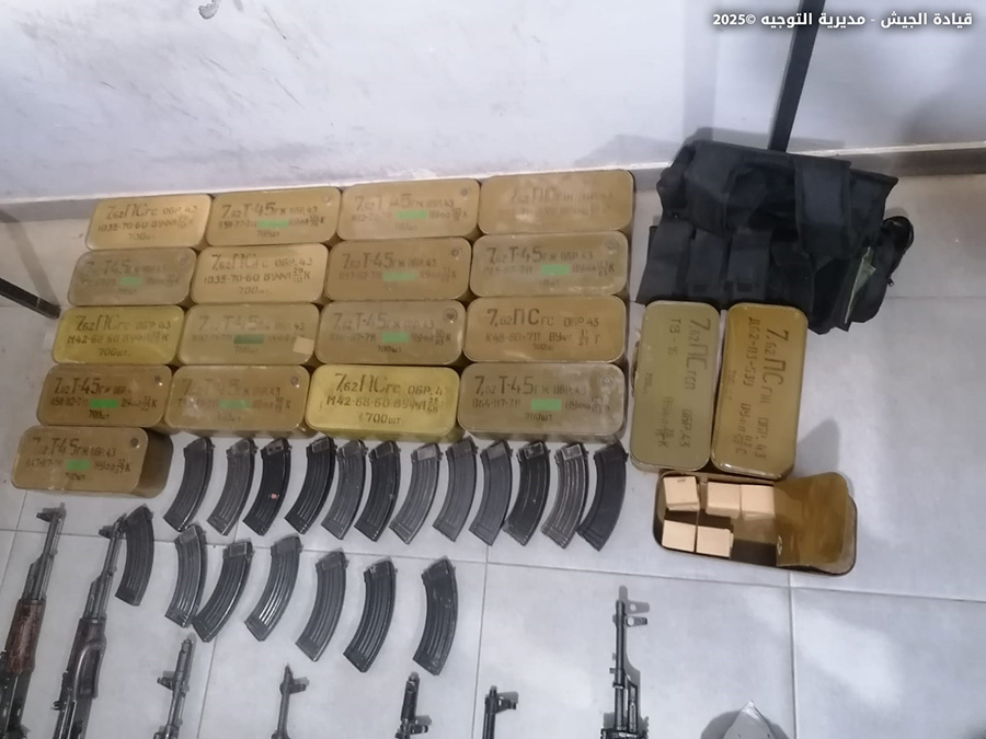 أعلنت قيادة الجيش – مديرية التوجيه، أنه “بعد انتشار مقطع فيديو تظهر فيه مجموعة من المواطنين المسلحين وهم يطلقون التهديدات ضد عدة جهات لبنانية، دهمت وحدة من الجيش تؤازرها دورية من مديرية المخابرات منازلهم في منطقة العماير – وادي خالد أوقفت المواطنَين (ا.ب) و(ر.ب.) وضبطت أسلحة وذخائر حربية”.