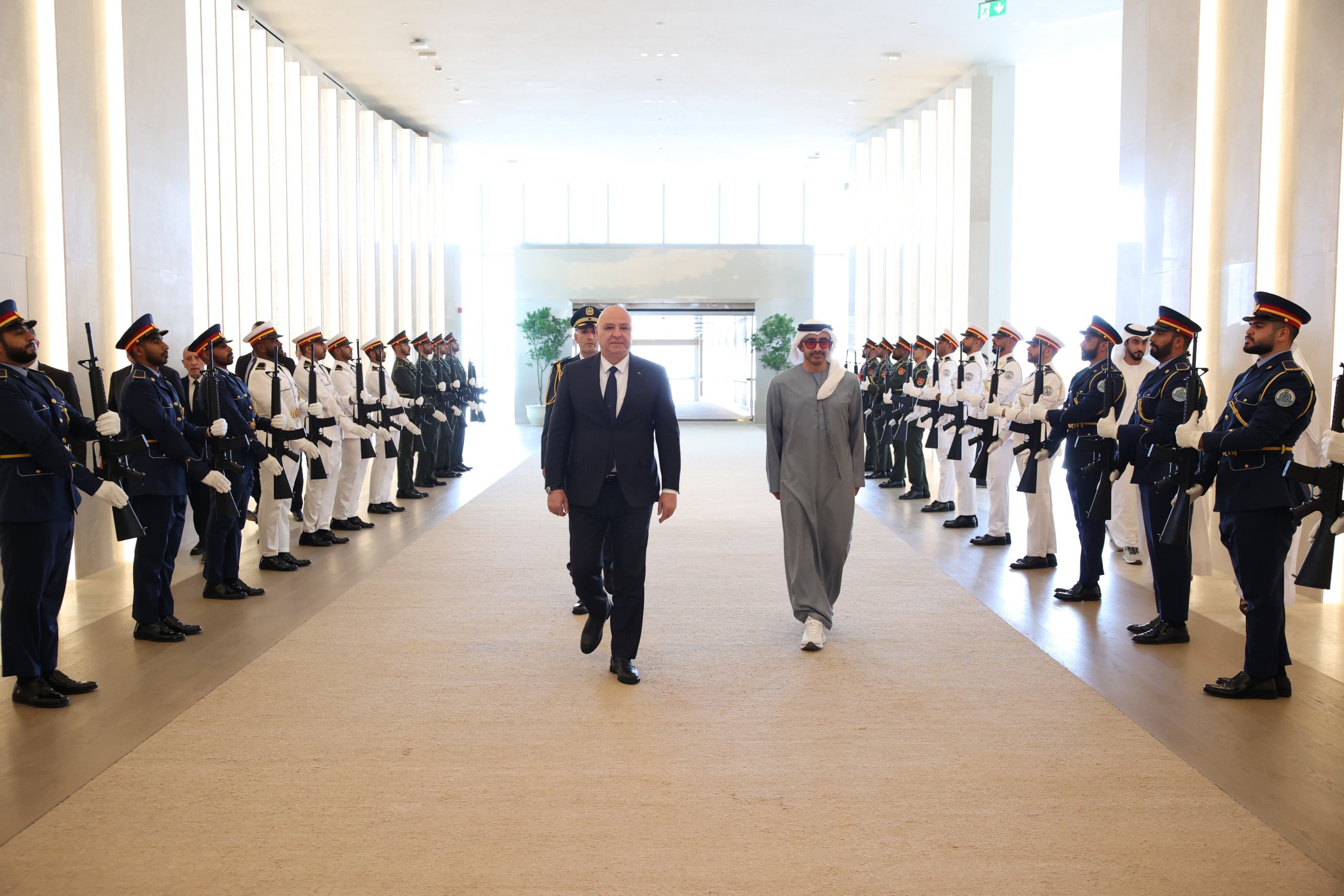 وبعد استعراض ثلة من حرس الشرف، صافح رئيس الجمهورية اعضاء الوفدين الاماراتي واللبناني، قبل ان ان يتوجه الى الصالة الرئاسية لاستراحة قصيرة انتقل بعدها الى قصر الشاطىء لعقد محادثات رسمية مع رئيس الدولة سمو الشيخ محمد بن زايد آل نهيان.