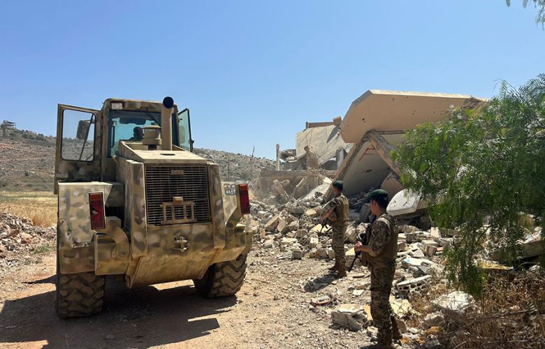 بالصور: الجيش يزيل سواتر ترابية إسرائيلية في ميس الجبل