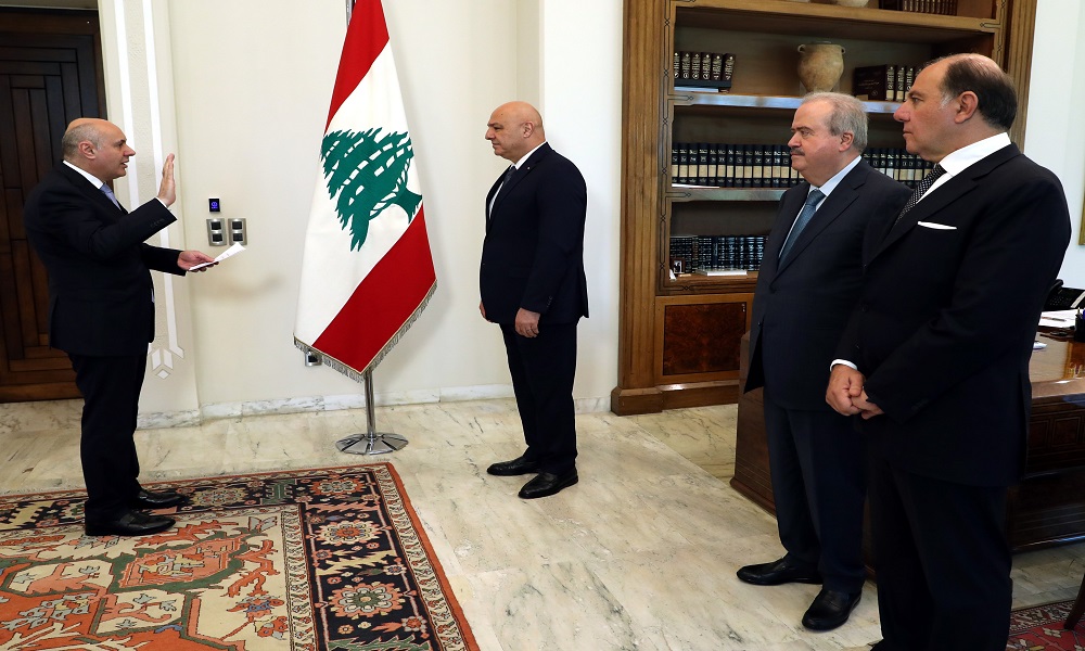 بالصور: جورج معرواي أقسم اليمين أمام الرئيس عون July 8, 2025 12:54 PM وكالات أقسم المدير العام لوزارة المال جورج معرواي اليمين أمام رئيس الجمهوريّة جوزاف عون بصفته عضوًا في المجلس المركزي لمصرف لبنان وعضوًا في مجلس هيئة الأسواق المالية وذلك في حضور وزير المال ياسين جابر وحاكم مصرف لبنان كريم سعيد.