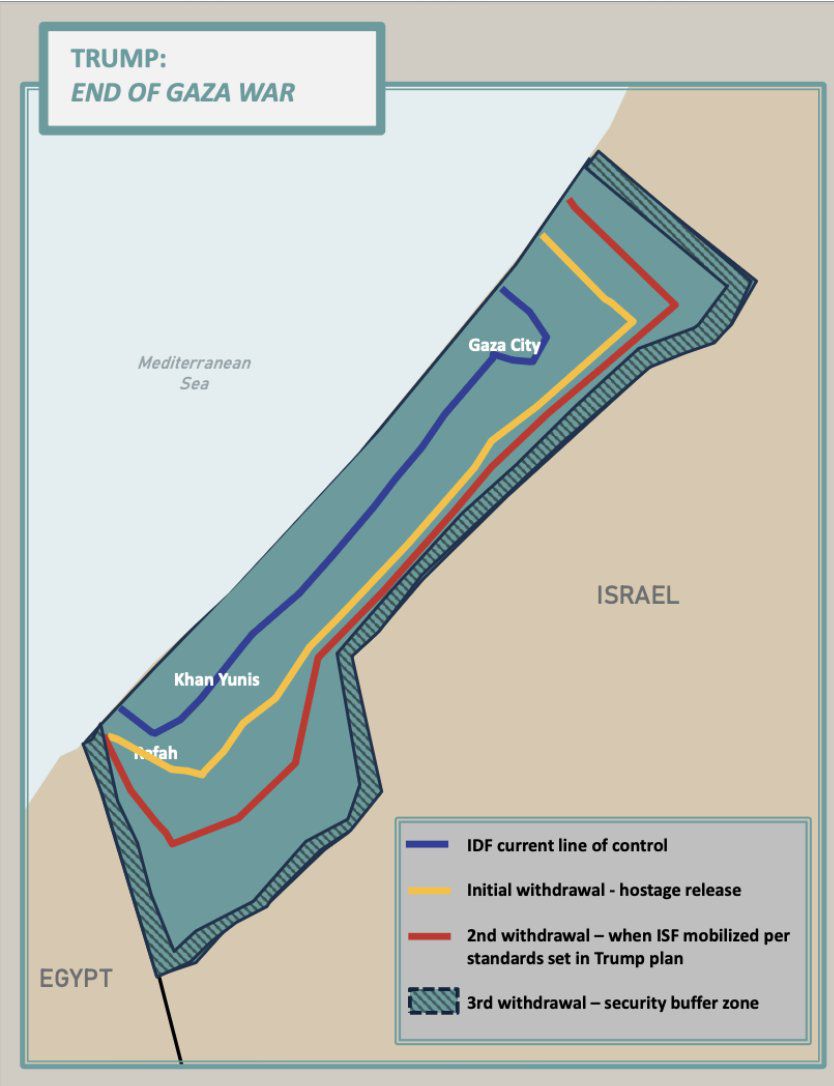 ونشر البيت الأبيض الخريطة التي اقترحها ترامب لإنهاء الحرب في غزة مع انسحاب إسرائيلي تدريجي.