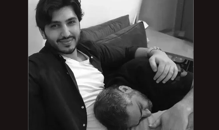 كما نشر صورة له مع والده، حيث بدا الأخير نائمًا على حضن ابنه.