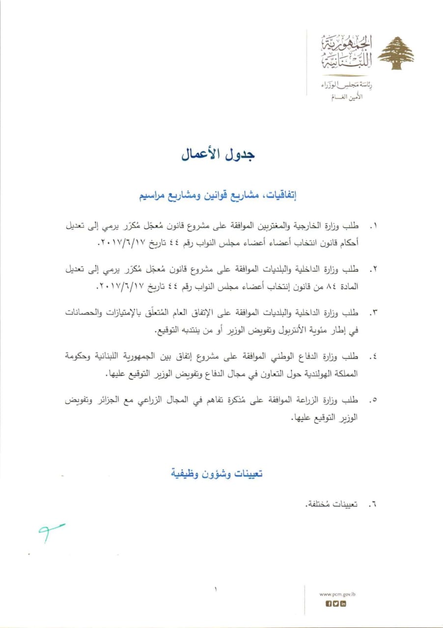 جلسة لمجلس الوزراء في بعبدا الأربعاء October 27, 2025 04:28 PM وكالات يعقد مجلس الوزراء جلسة عند الساعة الحادية عشرة والنصف من قبل ظهر يوم الأربعاء الواقع فيه 2025/10/29 في القصر الجمهوري، وقانون الانتخاب أبرز البنود.