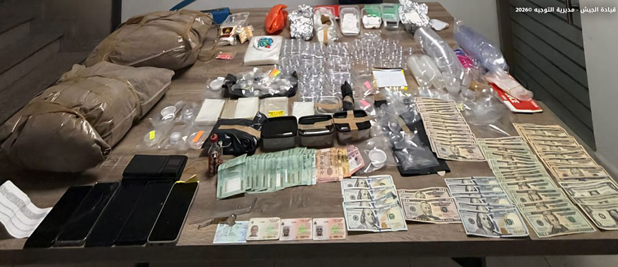 أوقفت دورية من مديرية المخابرات في الجيس اللبناني، بتاريخ ١٢/١/٢٠٢٦ في منطقة طبرجا – كسروان، المواطن (ع.ك.) لترويجه المخدرات، ودهمت شقة في منطقة حالات – جبيل يستخدمها لتخزين المخدرات، وضبطت كمية كبيرة منها، بالإضافة إلى بطاقات هوية مزوّرة.