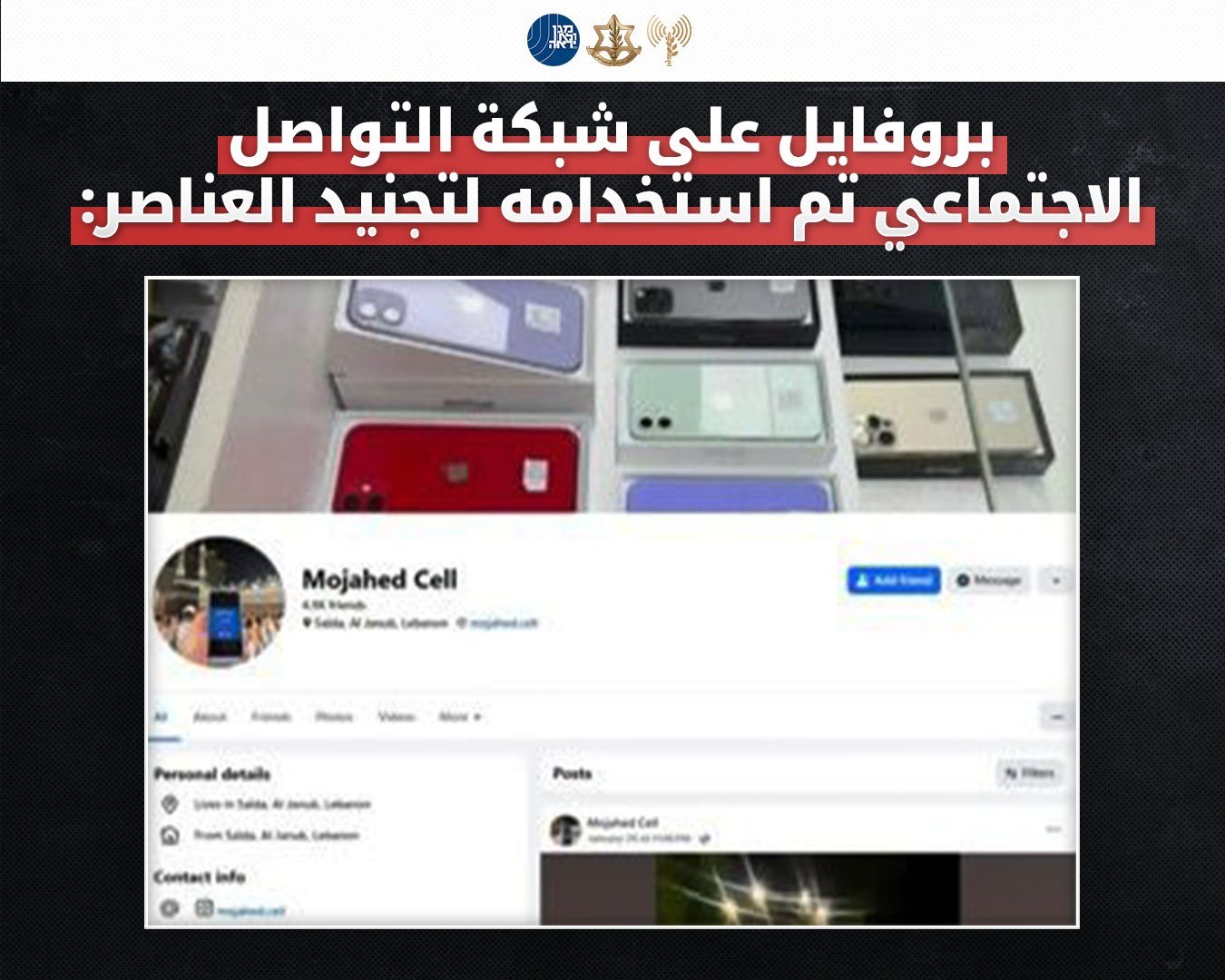 وتابع: “من جهة أخرى تم اكتشاف خلية أخرى تم تحريكها من قبل نفس المجموعة الإرهابية اللبنانية، حيث تم توقيف اثنين من سكان قرية تل التي في السامرة وهما ضياء الدين حمد وناصر عصيدة، في العشرينات من عمرهما، وتمت إحالتهما للتحقيق من قبل جهاز الشاباك. في إطار التحقيق معهما في جهاز الشاباك اتضحت مجريات تجنيدهما من قبل عنصر إرهابي لبناني يسمى مجاهد استعان بعدد من العناصر اللبنانية الأخرى الذين أطلق عليهم “أبو أحمد” و”أبو وحيد” والذين قاموا بالتواصل معهما بالتراسل عبر شبكات التواصل الاجتماعي وعبر منصات أخرى”.
