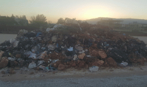 شاحنة مجهولة تفرغ النفايات في تعلبايا