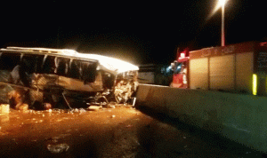 قتيلان و10 جرحى في اصطدام حافلة سورية بحائط اسمنتي في المصنع