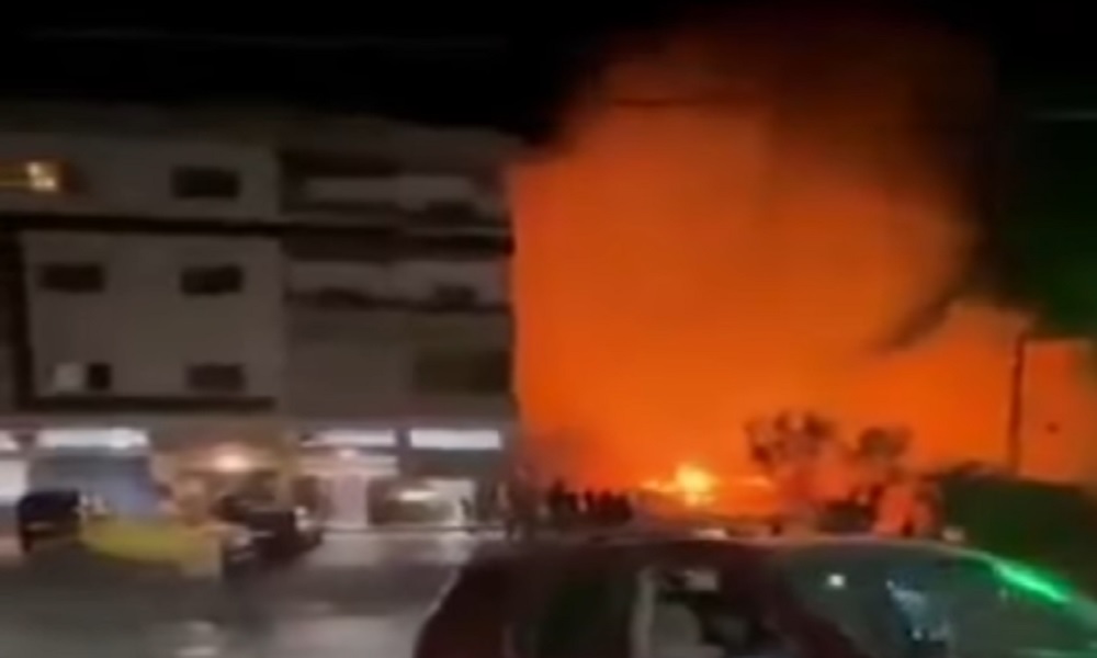 حريق كبير إثر قنابل حارقة ألقيت على جبل الرفيع