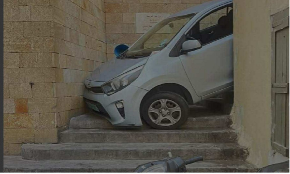 استقرت سيارة شاب، على درج مشاة بين بنايتين في منطقة عين المريسة، اليوم الخميس، بعدما اعتمد على “Google Maps” في تحديد طريقه.