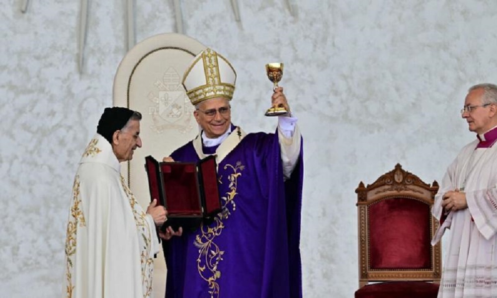 قدّم البابا لاوون الرابع عشر، بعد انتهاء القداس الإلهي، وبعد كلمة شكر ألقاها البطريرك الماروني مار بشارة بطرس الراعي، هدية رمزية عبارة عن كأس القربان، في لفتة تعبّر عن عمق البعد الروحي الذي طبع هذا اليوم الاحتفالي.